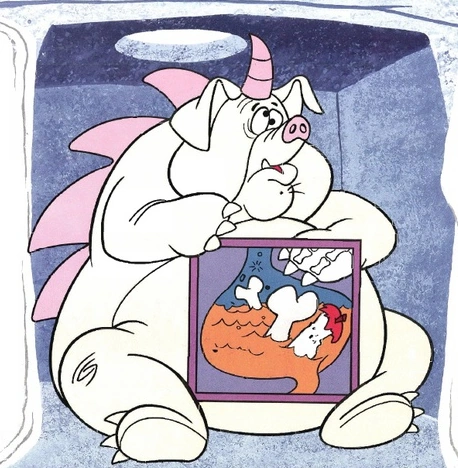 The digestive power of a pigasaurus in action in The Flintstones' Wacky Inventions.